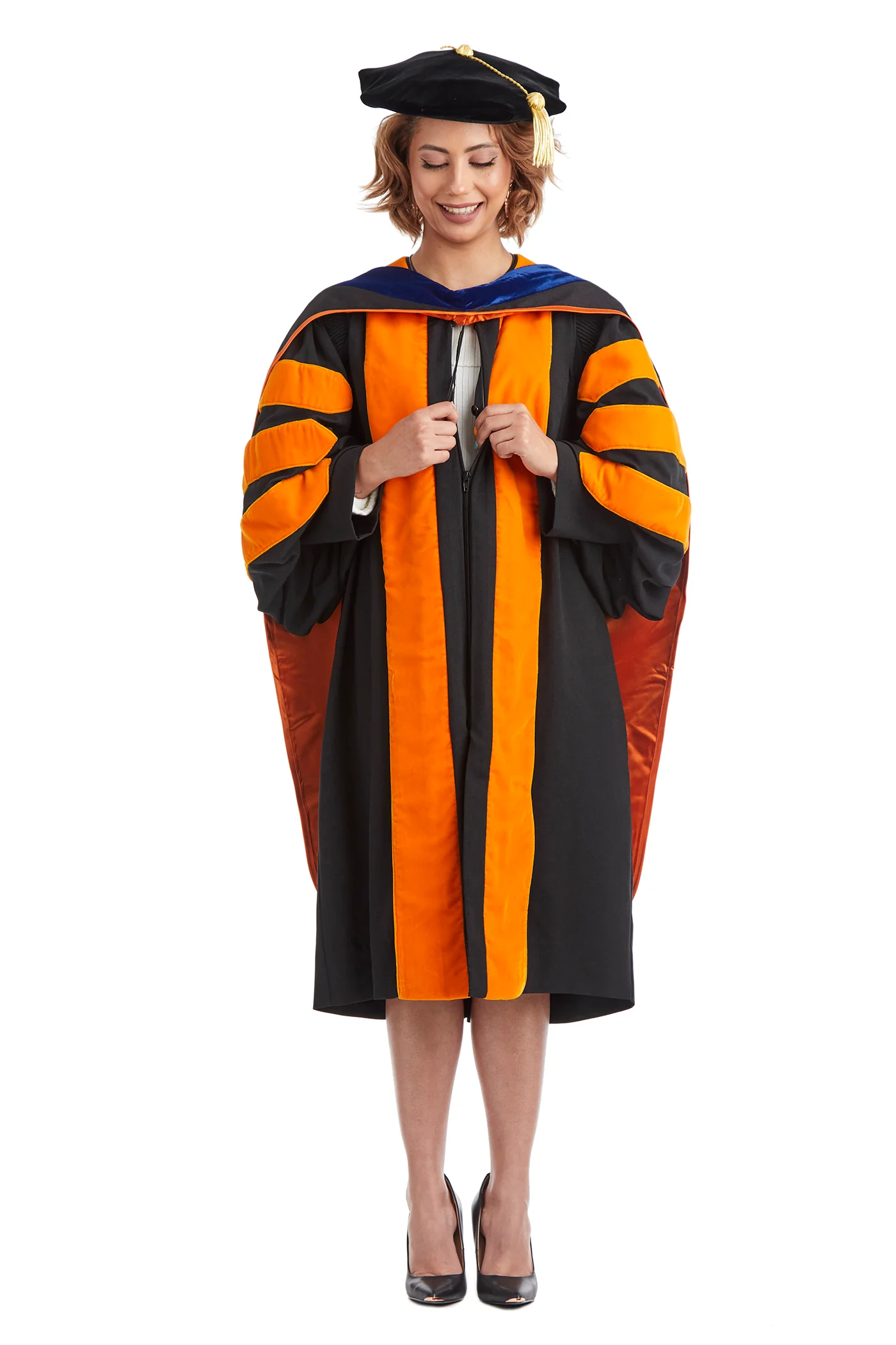 The significance of donning such regalia extends beyond mere attire; it symbolizes the culmination of years of academic dedication and achievement. Princeton University's distinct design and color scheme for its doctoral regalia are honored in this set, representing a rich tradition that adds a profound sense of prestige to the graduation ceremony.