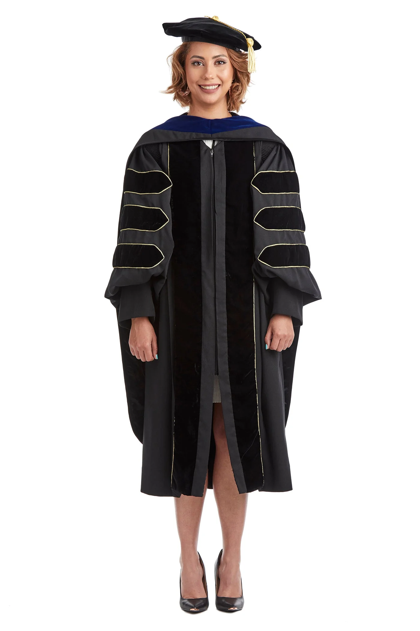 The significance of donning such regalia extends beyond mere attire; it symbolizes the culmination of years of academic dedication and achievement. University of Colorado Boulder's distinct design and color scheme for its doctoral regalia are honored in this set, representing a rich tradition that adds a profound sense of prestige to the graduation ceremony.